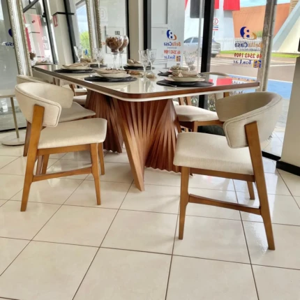 Mesa 2,00m Yara com Vidro (2027) com 06 Cadeiras Dior Nobre (3245)