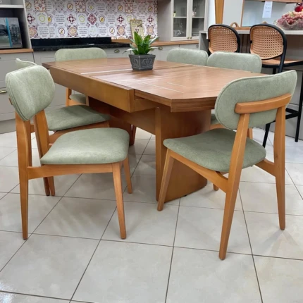Mesa Extensivel Lorena (5067) com 06 Cadeiras Betina Pistache (2302)