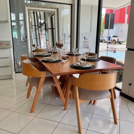 Mesa 2,00m Yara com Vidro (2027) com 06 Cadeiras Dior Nobre (3245)