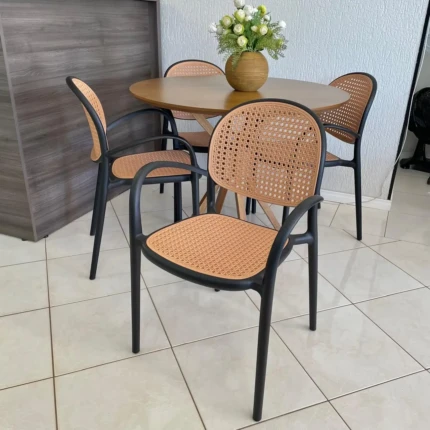 Mesa Redonda 1m (1745) com 4 Cadeiras Portofino Preto (3462)