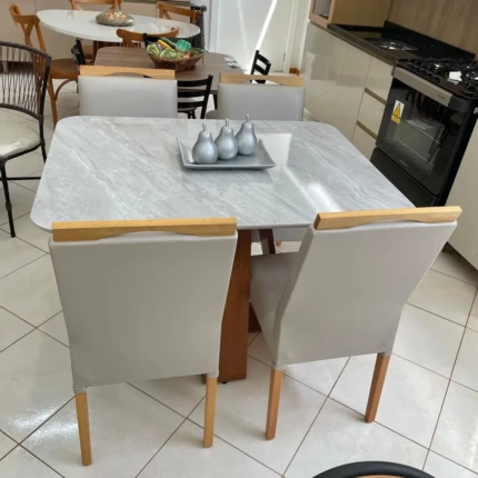 Mesa 1,20m Celeste Quartzo (3198) com 4 Cadeiras Betina Facto IMPERMEAVEL (3884)