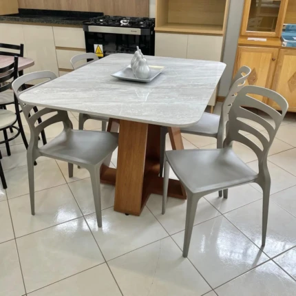 Mesa 1,20m Tampo Quartzo (3198) com 4 Cadeiras Ville Basalto (6783)