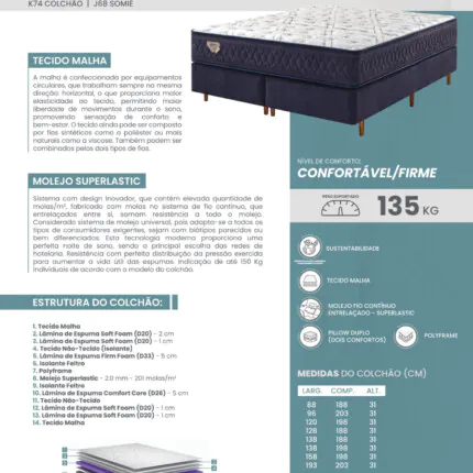 Cama Estofada Queen com Colchão Privilege de Molas – Macio – Ecoflex (2304-3511-4024)