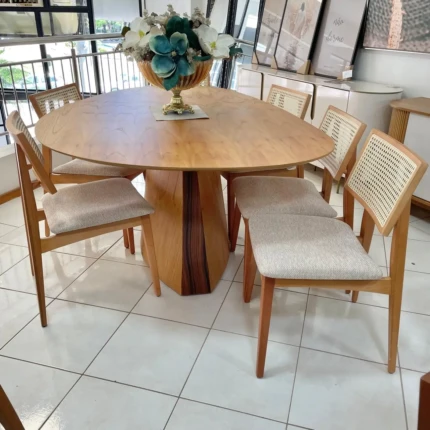 Mesa Organica 1,80m (4215) com 06 Cadeiras Ayla com Tela Natural (2818)