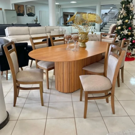 Mesa Oval 2,20m Ripada Cinamomo (2729) com 8 Cadeiras Vitoria Linho (2081)