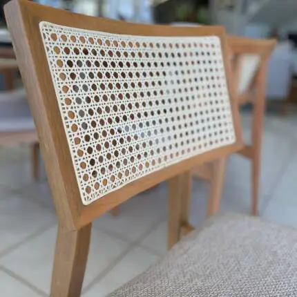 Mesa 1,60m com Vidro Off e Corda (5390) com 6 Cadeiras Ayla com Tela Natural (2818)