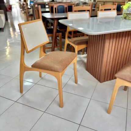 Mesa Naiara com Vidro (3491) com 6 Cadeiras em Madeira e Tecido Linho CAD152 (3961)