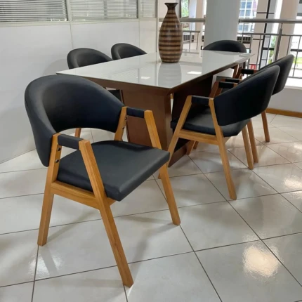 Mesa Rafaela Vidro (5501) com 6 Cadeiras Leon X Preto (1200)