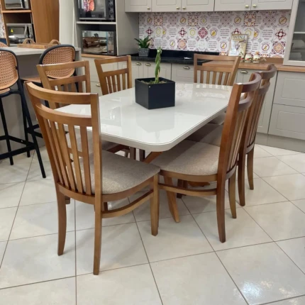 Mesa 1,55m com Vidro (137) com 6 Cadeiras Larissa Linho (3012)