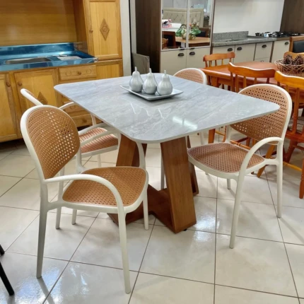 Mesa Celeste Quartzo 1,70m (5472) com 06 Cadeiras Leon X Impermeável (1200)