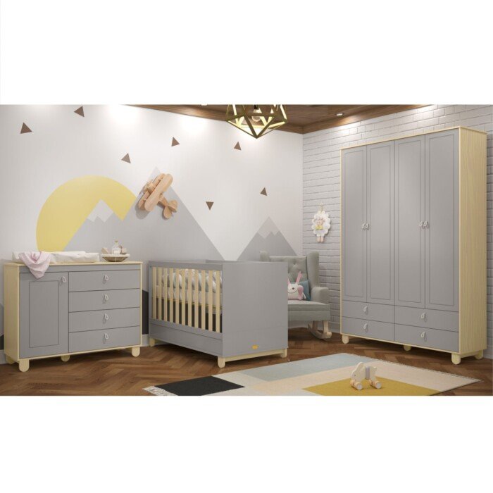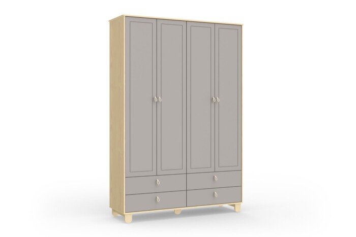Com um estilo natural, o Guarda Roupa Infantil Natural/Cinza 4 Portas Rope Natural é uma ótima escolha para garantir praticidade e segurança, além disso, o móvel dispõe de pintura atóxica. Oferece amplo espaço para organizar as roupinhas e as gavetas são ótimas para guardar os itens do enxoval do bebê, como fraldinhas, bodies e até mesmo o álbum de fotografia do neném!