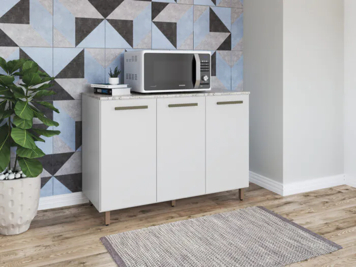 Balcao 1,20m 3 Portas 100% MDF Branco com Tampo (1372-3242)
