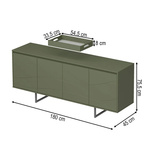 Une estética e funcionalidade para o viver atual, oferecendo amplo espaço interno para melhor organização, bandeja móvel com fundo em vidro jateado de 5mm, 4 portas com dobradiças com amortecimento e pés metálicos que garantem resistência e valorizam seu desenho moderno.
