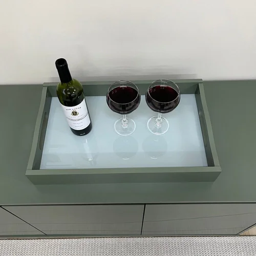 Bandeja móvel com fundo em vidro jateado 5mm