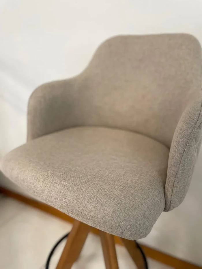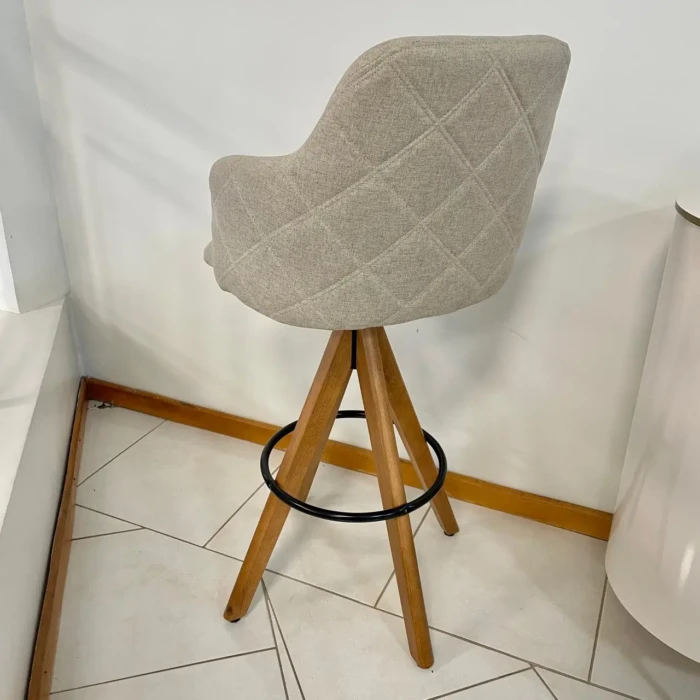 Conforto e beleza nessa linda Banqueta com base de Madeira GIRATÓRIA, revestidas de Tecido Linho