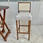 Estrutura em madeira eucalipto, suporte para pés em metal, encosto anatômico e assento estofado com espuma de 3 cm revestido com couro ecológico Preto.