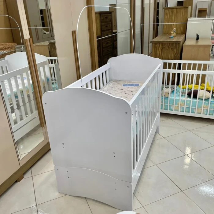 Berço Bala de Menta possui varão para mosquiteiro, cantos arredondados. Produto funcional para tornar seu dia mais prático e seguro.