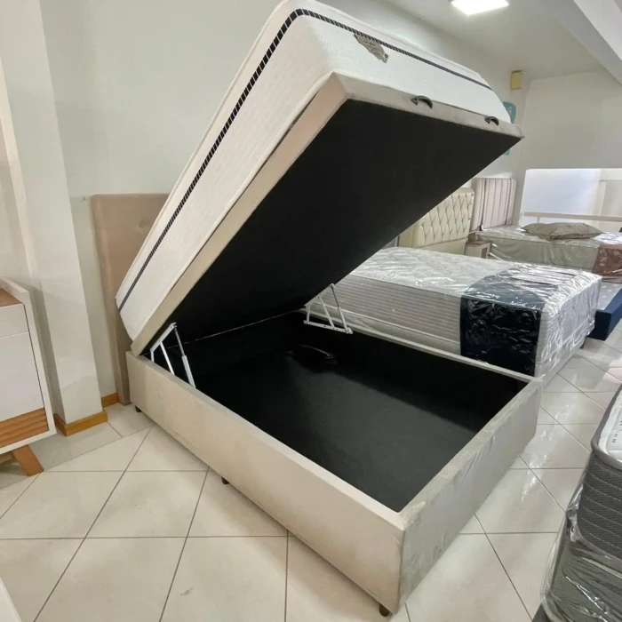 Conjunto Box MULTI Support Ecoflex com Base de box BAÚ em Veludo Bege.