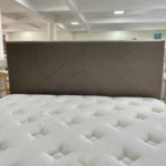 Linda e Moderna Cabeceira estofada em tecido da nova coleção, em tom claro, com abas laterais arredondados.