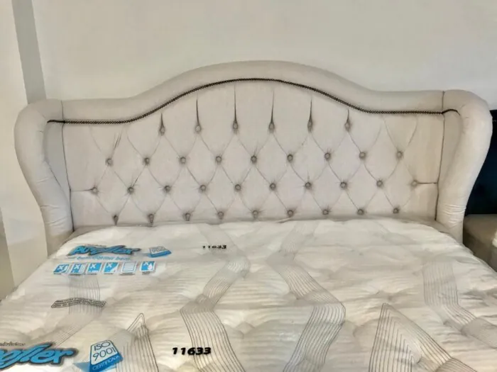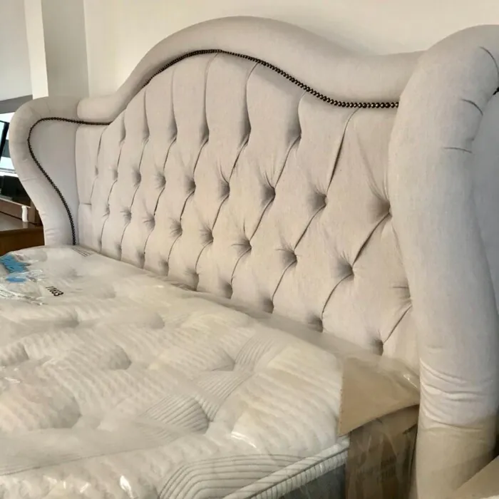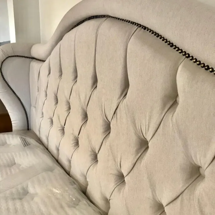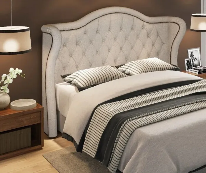 A cabeceira Mônaco Queen estofada revestida em tecido linho claro com pontos captonados e tachas que proporciona um charme único a essa cabeceira Maravilhosa, deixando o seu quarto ainda mais bonito e aconchegante.