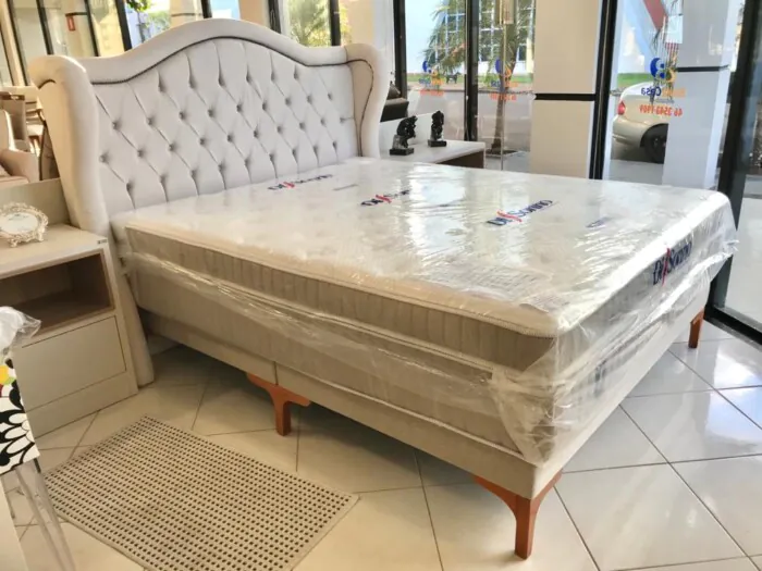 A Cabeceira possui comprimento de 1,80m, ficando o box encaixado dentro dela, é Linda!