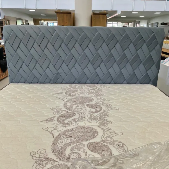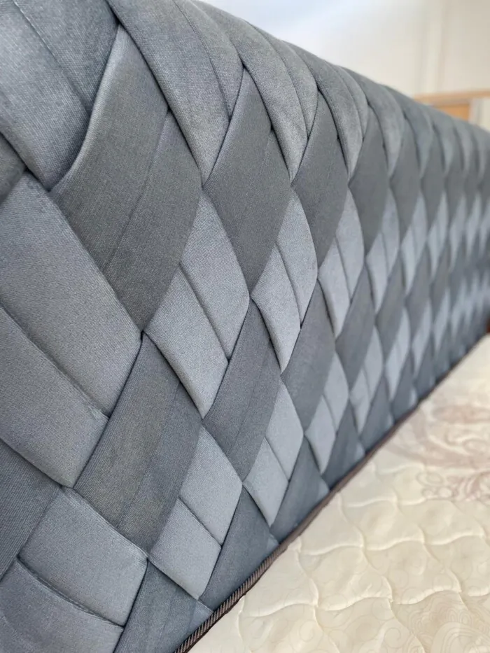 Trabalhada com detalhes tramados, essa cabeceira é ideal para quartos modernos.
