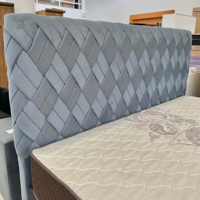 Linda e Moderna Cabeceira estofada em Veludo Turkay Prata (Tecido de toque macio e que não marca ao passar a mão)