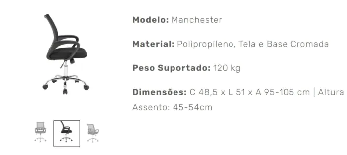 Cadeira Giratoria Diretor Manchester Light Preto (4420)