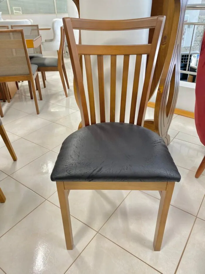 Cadeira Alta em Madeira, ergonômica e em tecido nobuck preto: Praticidade para limpeza e resistência contra água.