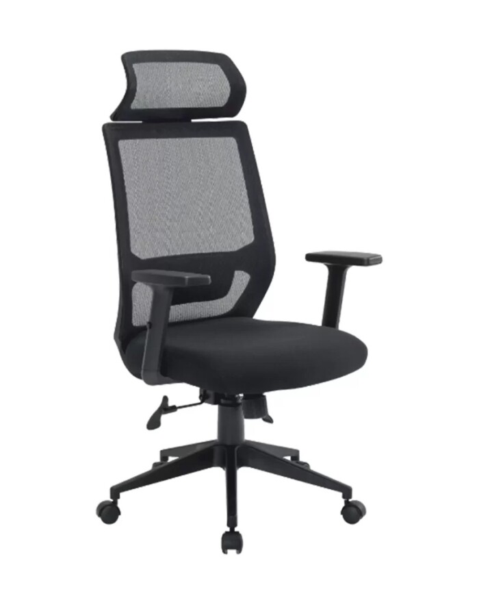 Características: Regulagem de altura do assento | Regulagem de altura dos braços | Assento com espuma injetada | Regulagem da inclinação do encosto | Sistema sincronizado (travamento do encosto em qualquer posição) | Apoio de lombar | Apoio de cabeça regulável | Ergonômica – Certificação NR 17
