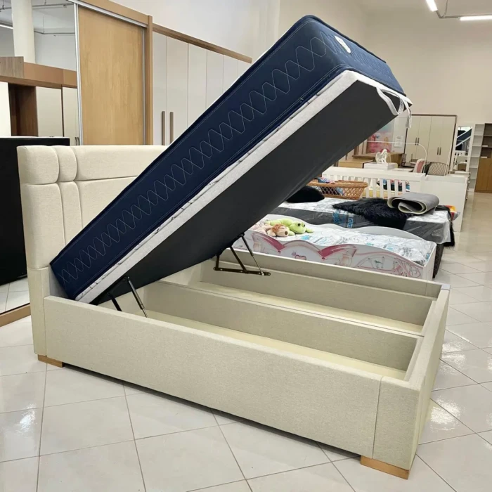 Maravilhosa Cama Baú estofada Valencia revestida em tecido LINHO NATURAL: