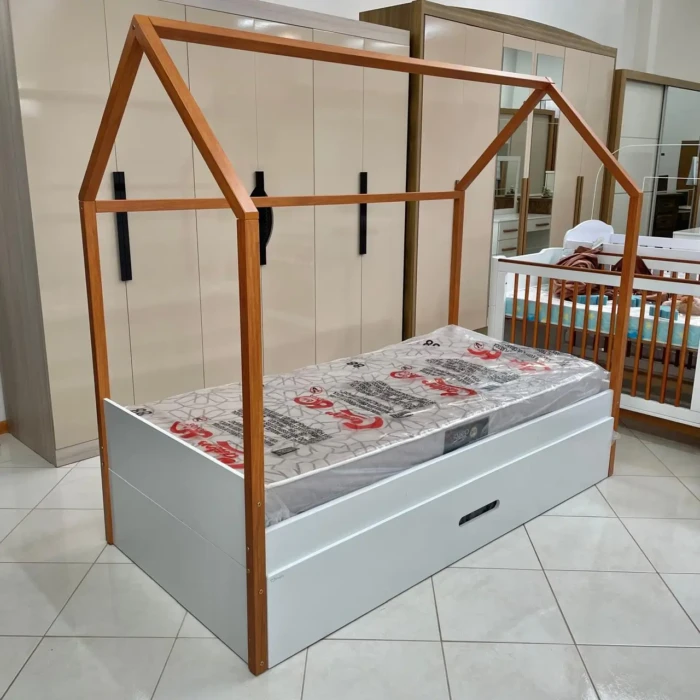 Cama Solteiro Casinha com Auxiliar (1610-3609)