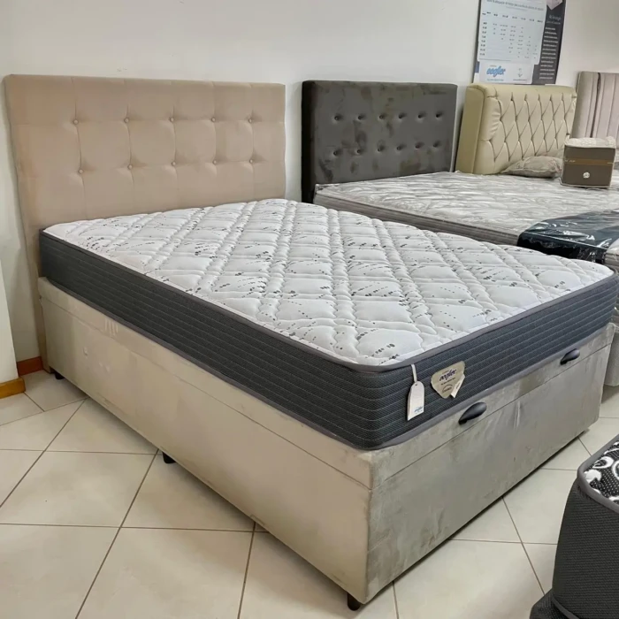 Conjunto Box Adapto Ecoflex com Base de box BAÚ em Veludo Bege.
