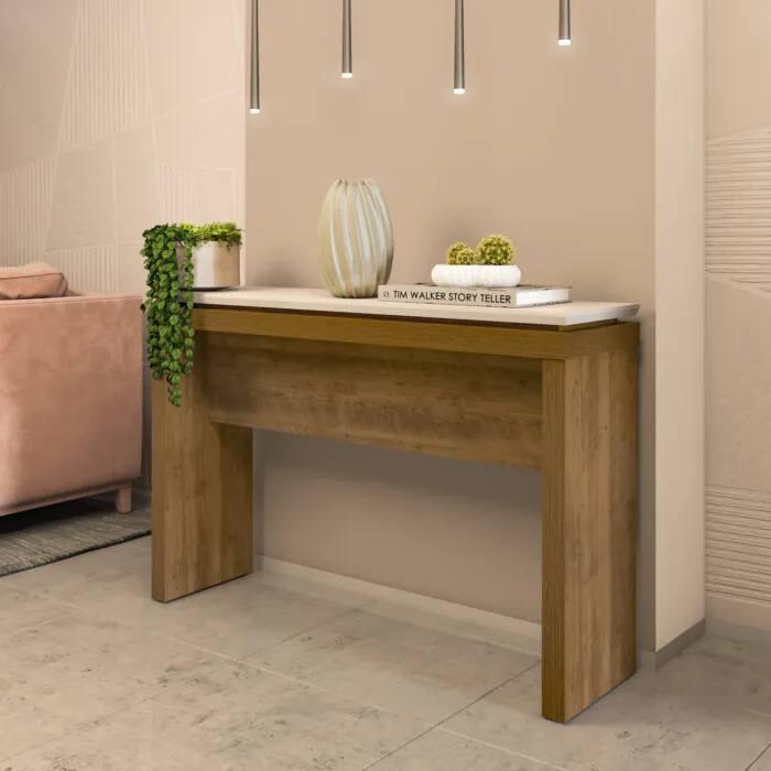Você pode destacar seus objetos de decoração e fotos favoritas, criando um espaço charmoso e acolhedor. Seja na sala, hall de entrada, corredor ou atrás do sofá, este aparador é a escolha certa para quem quer um móvel elegante e funcional.