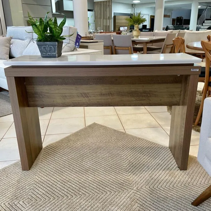 Conta com um design leve e elegante, com tampo duplo de MDF 25mm com borda invertida, e Tamburato 50mm.