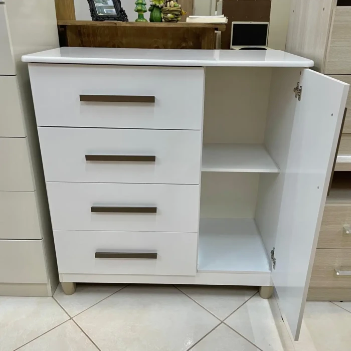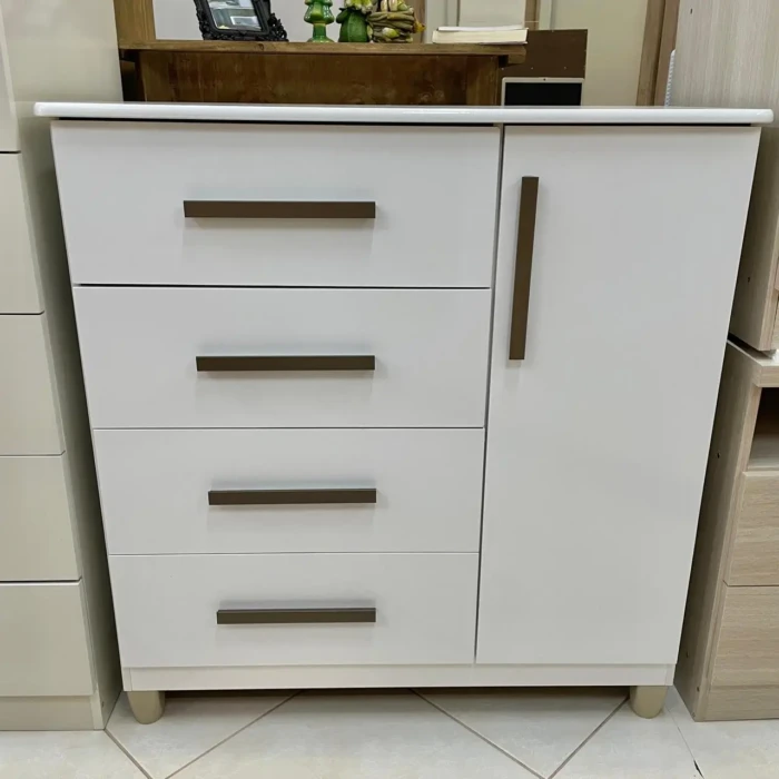 Comoda 88cm 4 Gavetas 1 Porta Sapateira Havana Branco (2907)
