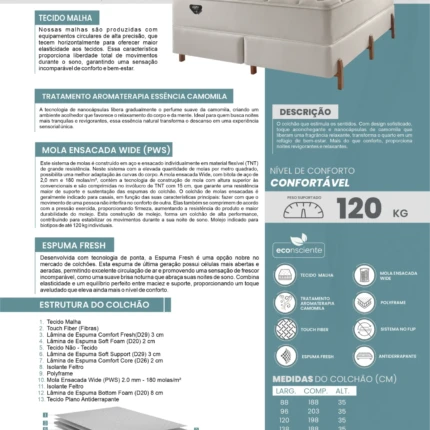 Tamanho CASAL – 1,38m x 1,88m – Altura do colchão + base de 55cm