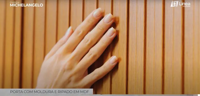 Uma linda cozinha em MDF com lindo detalhe ripado: visual moderno e elegante,