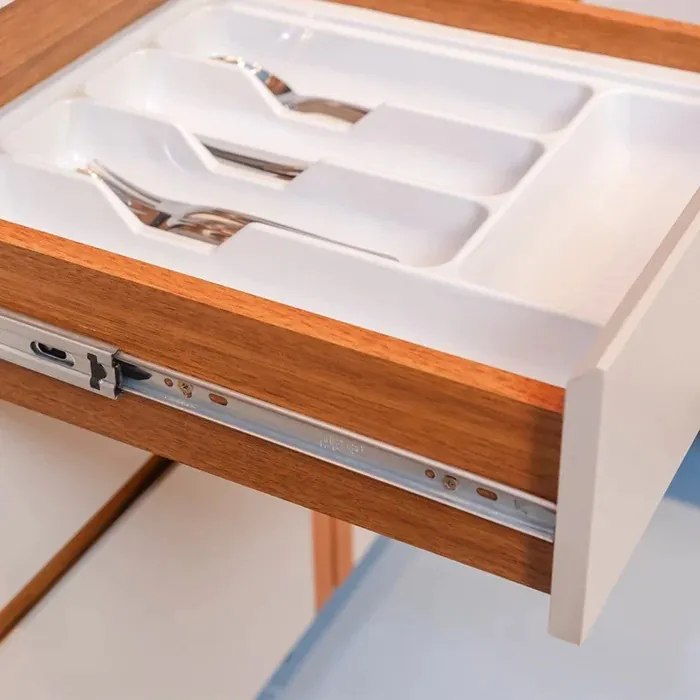 Corrediça das Gavetas Telescópicas de três estágio e abertura Total