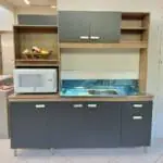 Utilizando o contraste entre o madeirado ripado e o off white, essa cozinha vai ser um charme incomparável para seu ambiente.