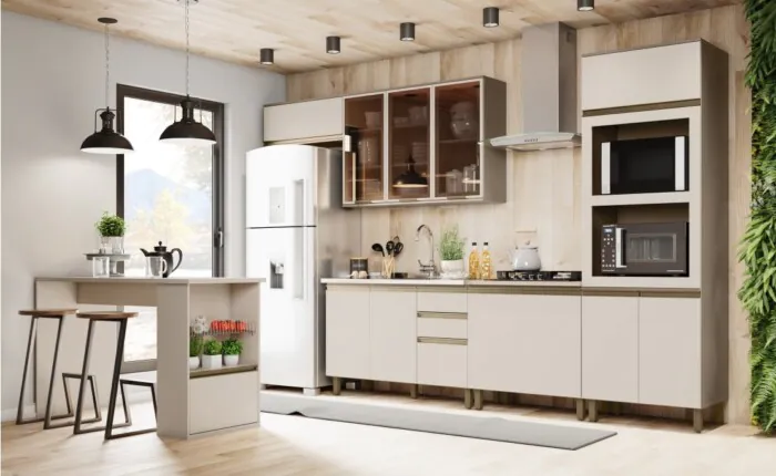 Uma cozinha Modulada 100% MDF com vidro bronze: visual moderno e elegante,