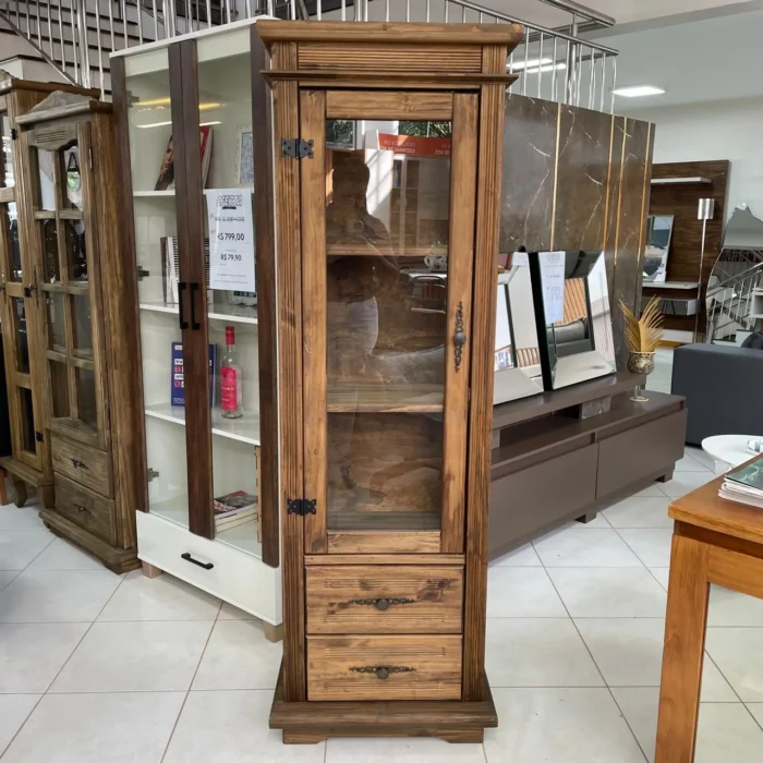 Cristaleira Rústica em Madeira 1 Porta 60cm (3323)