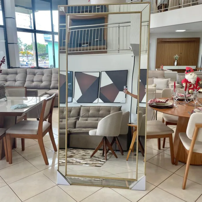 Espelho Chanfrado 2m x 1m com Detalhes em Dourado (4536)