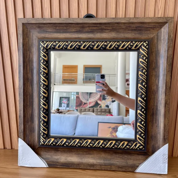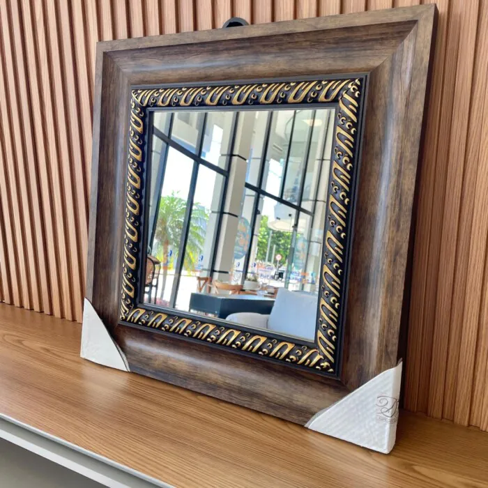 Espelho Quadrado 60 x 60cm Moldura Marrom (6220)