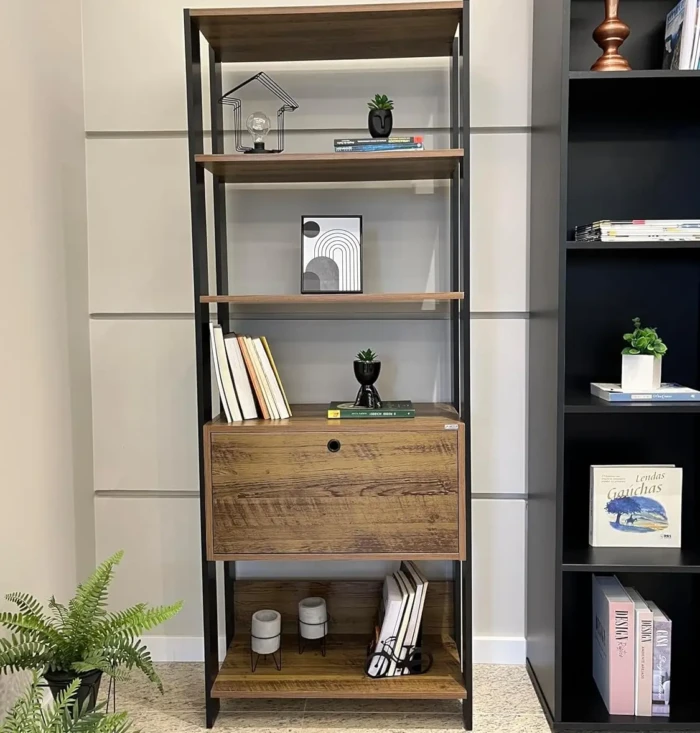 Deseja decorar sua casa com muito estilo? Inspirada na tendência do estilo industrial, a Estante Match agrega muito charme e personalidade aos ambientes. Suas prateleiras são ideais para aproveitar bem o espaço, pois promove uma organização vertical, deixando livre o espaço do chão. O melhor de tudo é que com esta estante você organiza todas as suas coisas com muita categoria e elegância. Esta estante é muito versátil, se adequando bem ao quarto, home office, escritório, e sendo inclusive um item muito interessante para ser usado na sala para expor suas mais belas decorações e até mesmo itens como taças e bebidas. Encante-se com a beleza e a funcionalidade da Estante Match.