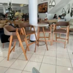 Produzada em Madeira Tauari Leon X, o assento é Estofado revestido de Tecido Facto IMPERMEÁVEL cor Bege