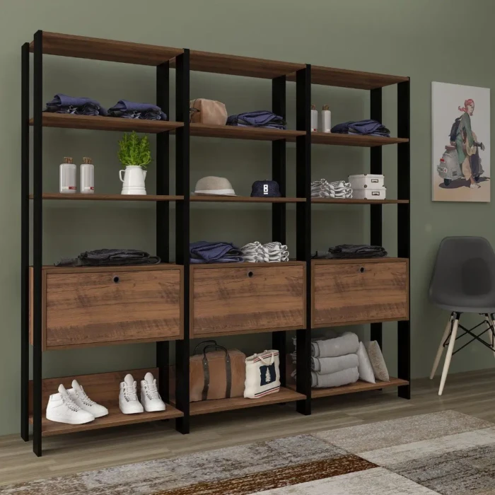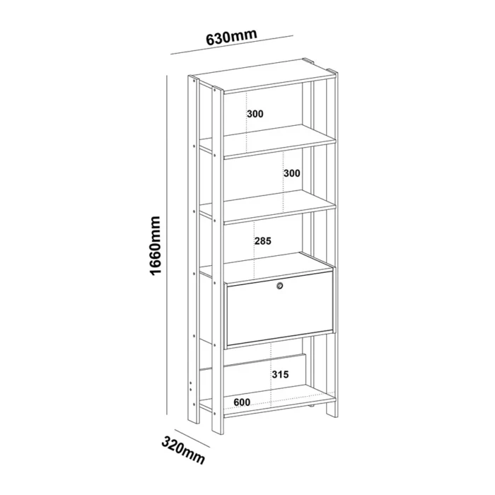 – Dimensões da Estante Individual: 63 cm (largura) x 166 cm (altura) x 32 cm (profundidade)