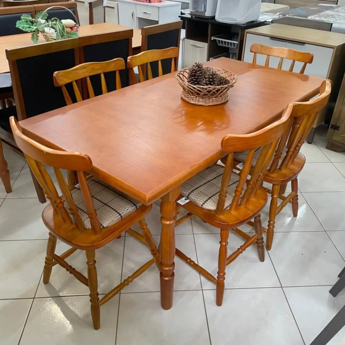 Mesa 1,60m Madeira (1415) com 6 cadeiras colonial (3753)
