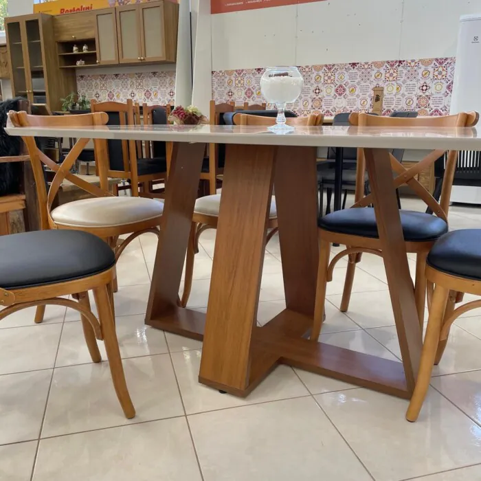 Base cruzada com um maravilhoso tampo Chanfrado de cantos Arredondados com Impressão Quartzo