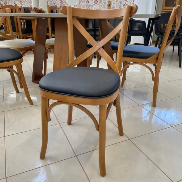 – Com 06 Cadeiras em Madeira Tauari Leon X, o assento é Estofado revestido de Tecido Facto IMPERMEÁVEL cor Preto